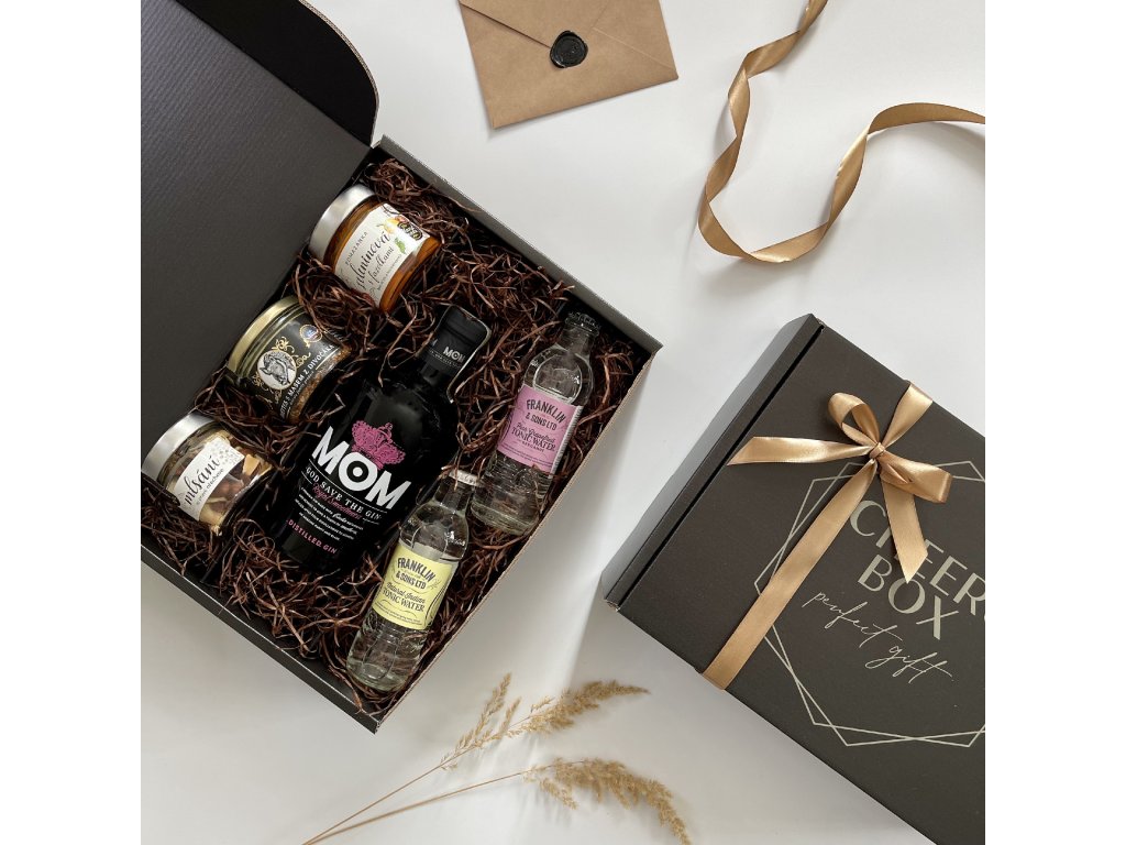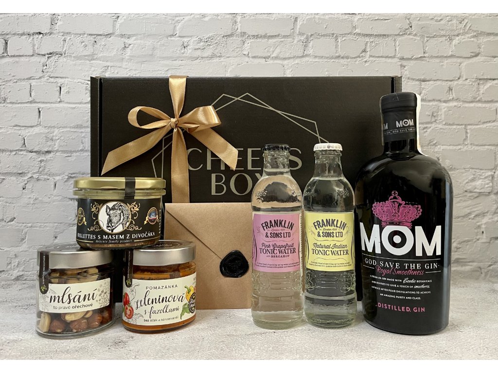 Královna ginů, která se nebojí bořit stereotypy. To je čtyřikrát destilovaný gin s příchutí lesního ovoce a bylin. Jemný a přitom výrazný, elegantní a přitom divoký, zkrátka aristokratický gin pro potěšení korunovaných hlav i běžného lidu. Vychutnejte si kombinaci unikátního ginu s dvěma různými příchutěmi toniků. Box obsahuje klasický indian water tonic a tonic s chutí růžového grapefruitu a bergamotu, k tomu různé delikatesy, jako je báječný masový rillettes, ořechové mlsání nebo zeleninová pomazánka. Všechny tyto produkty jsou bez éček a bez konzervantů.