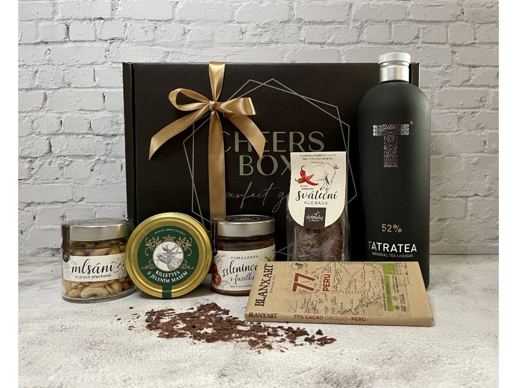 V tomto boxu naleznete legendární bylinný likér ze srdce Slovenska. Obsahuje prvotřídní černý čaj z Indie, pramenitou horskou vodu, dubové hobliny a přísně tajnou směs tatranských bylinek a koření. Všechny ingredience společně 8 týdnů zrají v jednom tanku, aby se jejich chutě propojily v jeden dokonalý celek. Následuje pečlivá filtrace a ředění pramenitou vodou ze slovenských Tater. Po dalších 6 týdnech odpočinku putuje do designových láhví.